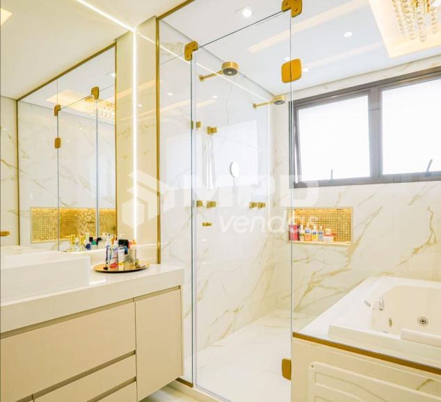 Salão de festas gourmet com longe externo, Piscina coberta climatizada com raia de 25m, Piscina coberta climatizada infantil, Piscinas descobertas Adulto e Infantil, Spa, Sauna seca com ducha, Fitness, Sala de ginástica, Quadra recreativa, Salão de jogos, Playground, Brinquedoteca, Quadra de squash, Pet Care, Pet Place, Bicicletário, Car Wash Box, Lounge de espera para motorista, Salas de Reuniões, Depósito privativo de 5m² e 7m² no andar, Portaria blindada, Infraestrutura para futura instalação de automação, Fechadura biométrica nos acessos sociais das unidades, Espaço para central de alerta e monitoramento, Elevador privativo, Biometria nos elevadores sociais, Gerador para resgate dos elevadores e áreas comuns, Circuito fechado de monitoramento nos acessos de veículos e pedestres (CFTV), Copa e Vestiário para funcionários.