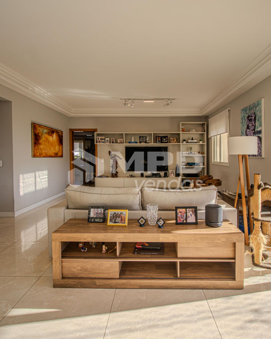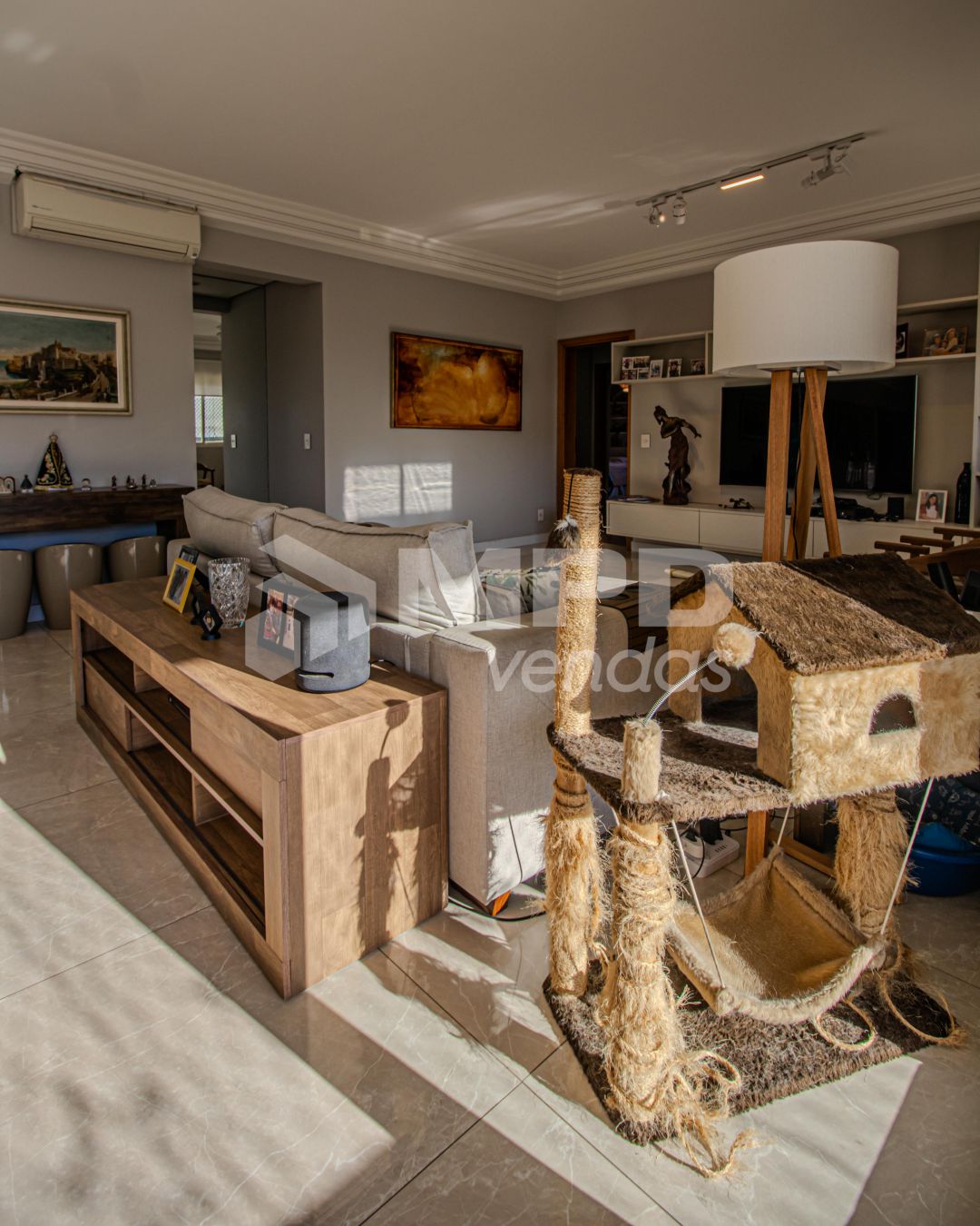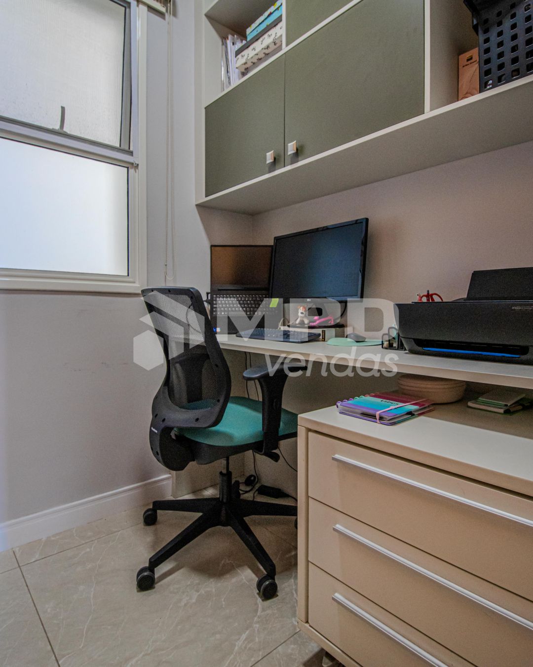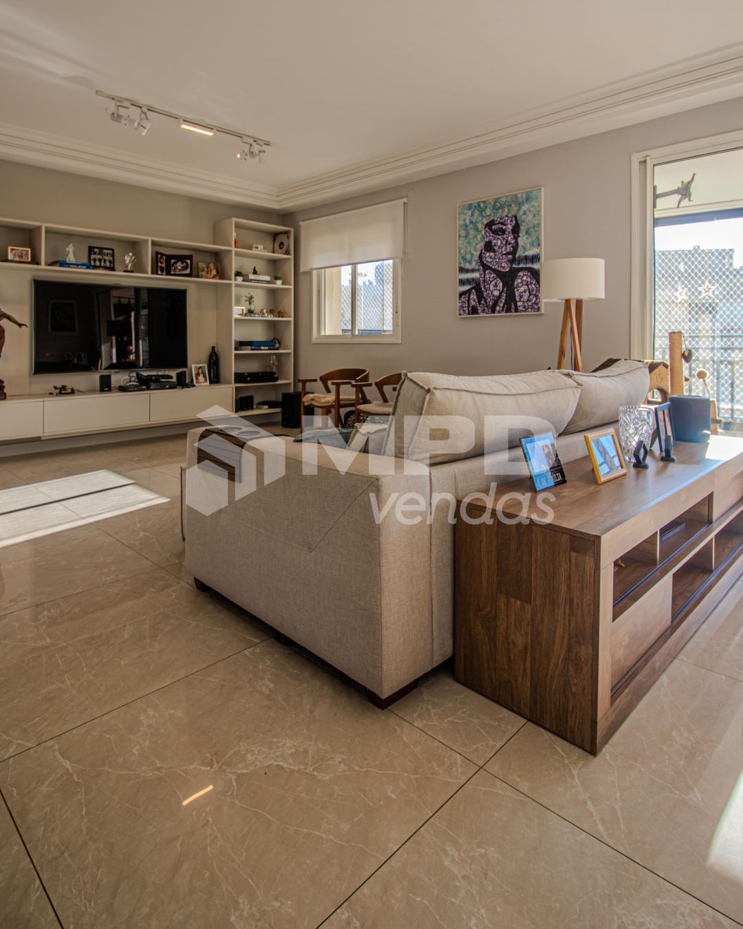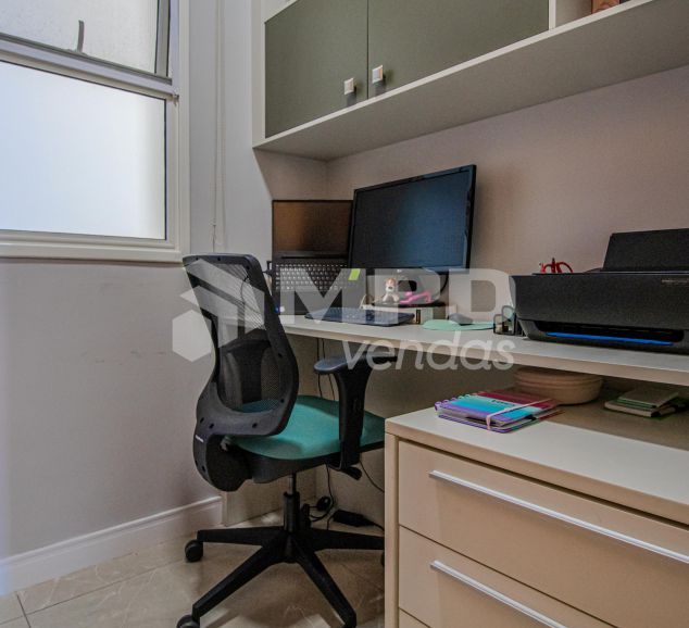 O apartamento tem pintura latex em todos os ambientes, piso porcelanato na sala e piso em madeira nos quartos.