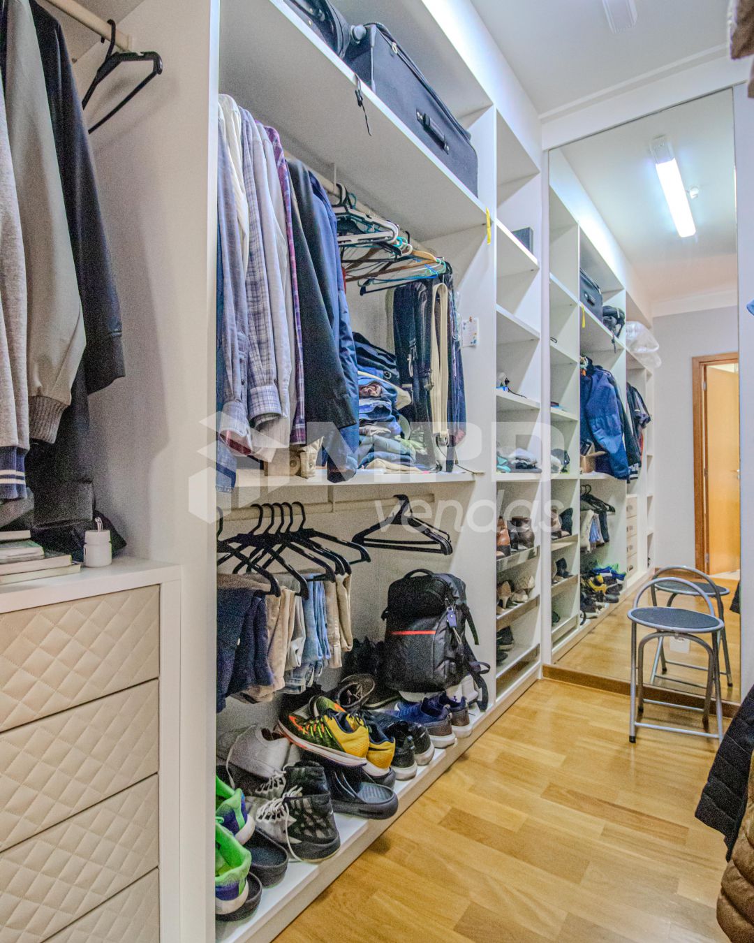 Há armários planejados em todo o apartamento;